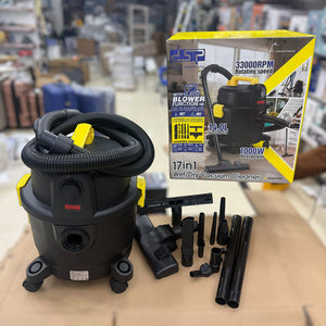 The DSP France 17-in-1 Wet & Dry Vacuum Cleaner & Blower is a versatile cleaning solution designed for homes, garages, workshops, hotels, and commercial spaces. Powered by a 1000W high-efficiency motor with 33,000 RPM rotating speed, it delivers powerful suction of 18kPa to remove dust, dirt, pet hair, and liquid spills with ease.
